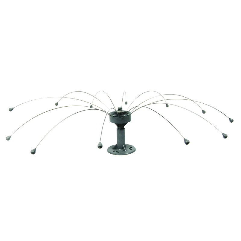 The Daddi Long Legs is a spider-shaped circular deterrent that has a freely rotating head with long Stainless Steel wires which bounce in the wind or when a bird comes into contact with it.